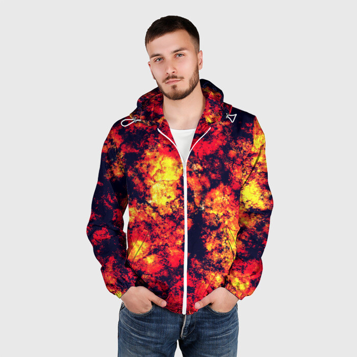 Свободная легкая ветровка с капюшоном, застегивается на молнию. Сшита из плотной ткани, по всей поверхности которой наносится принт. Можно заказать со своим дизайном.