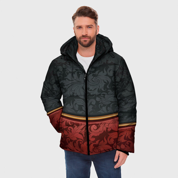 Мужская зимняя куртка 3D с принтом Узоры Black and Red