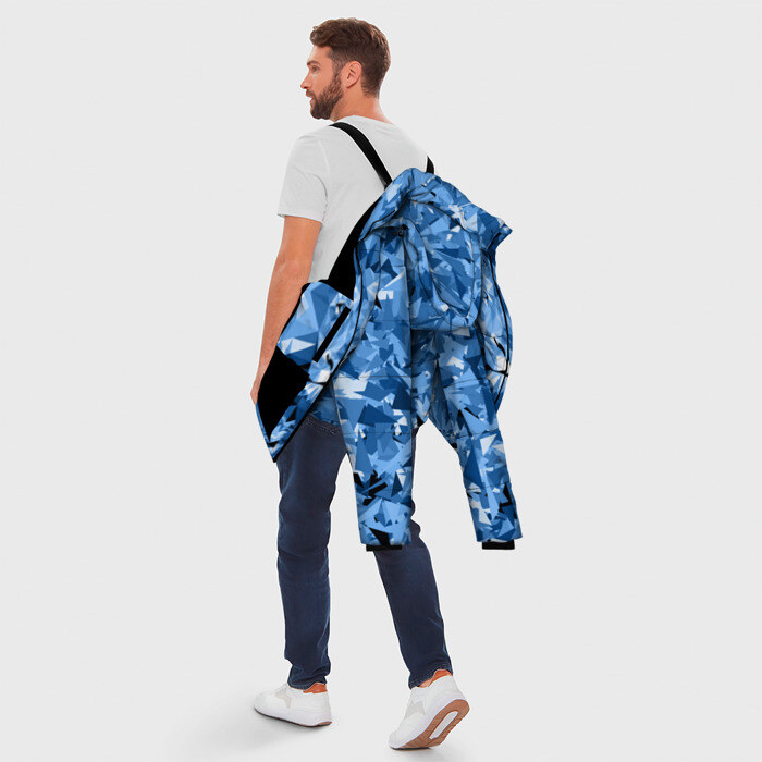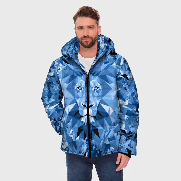 Мужская зимняя куртка 3D с принтом Сине-бело-голубой лев