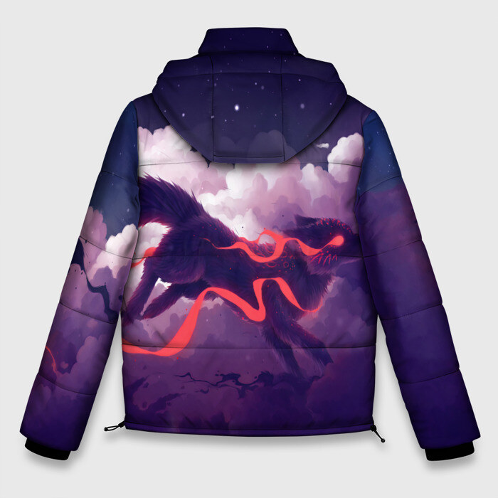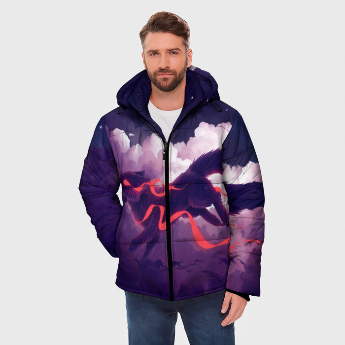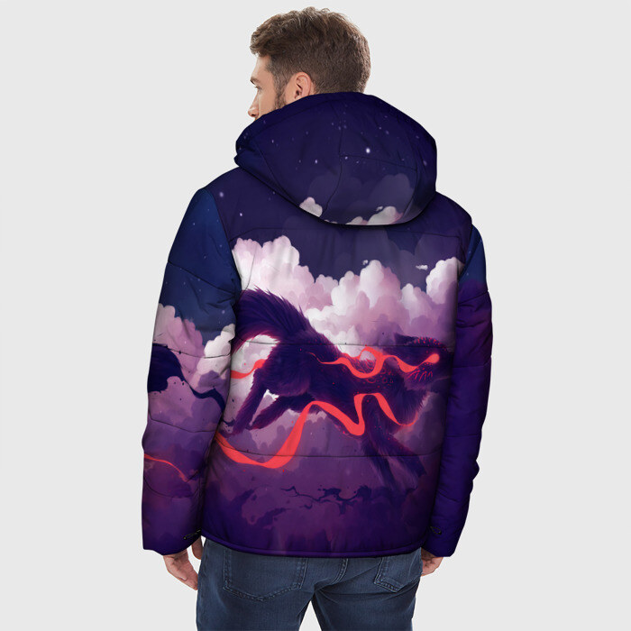 Мужская зимняя куртка 3D с принтом Лиса бежит по облакам