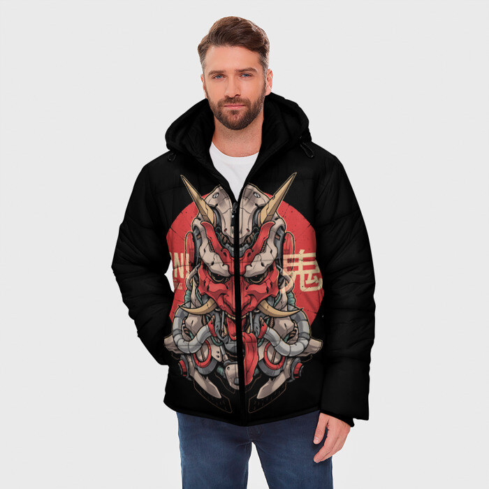 Мужская зимняя куртка 3D с принтом Cyber Oni Samurai