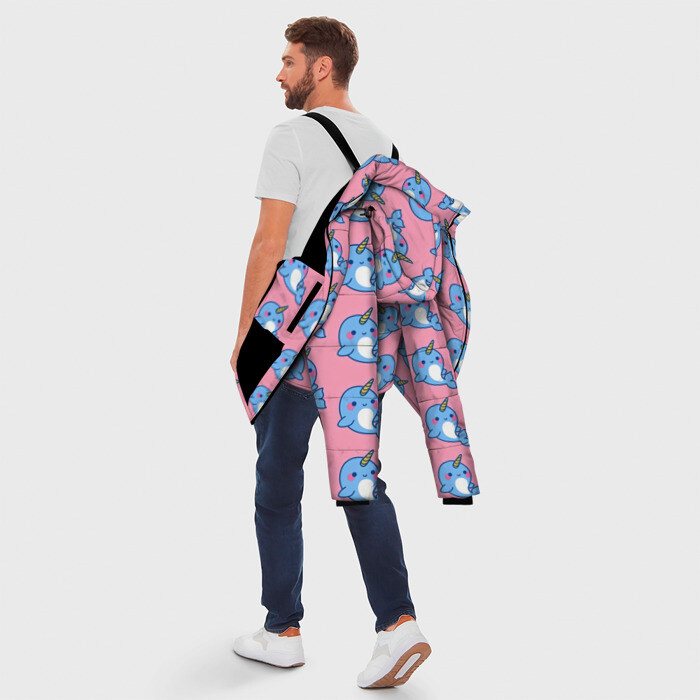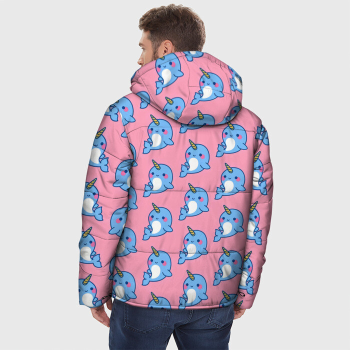 Мужская зимняя куртка 3D с принтом Дельфинчики | Единорожки