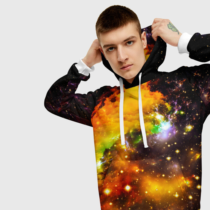 Толстовка 3D сшита из ткани с тонким мягким внутренним слоем. Свободная посадка по фигуре, капюшон с завязками и большой карман спереди, в котором удобно прятать или греть руки. Сшита из гладкого синтетической ткани, с полным покрытием принтом.