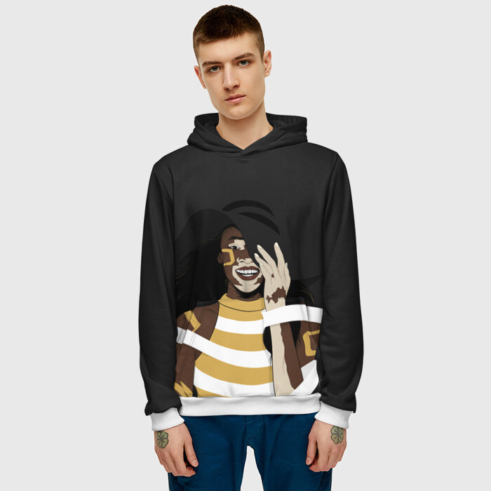 Толстовка 3D сшита из ткани с тонким мягким внутренним слоем. Свободная посадка по фигуре, капюшон с завязками и большой карман спереди, в котором удобно прятать или греть руки. Сшита из гладкого синтетической ткани, с полным покрытием принтом.