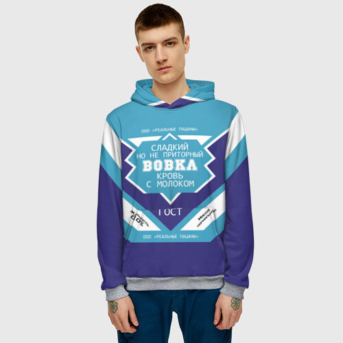 Мужская толстовка 3D с принтом Вовка - банка сгущенки