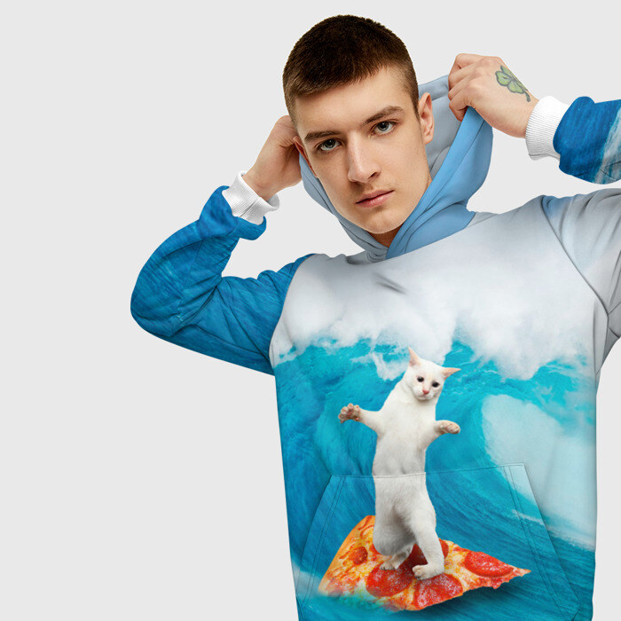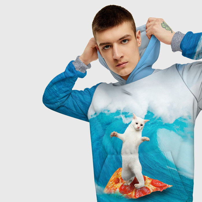 Толстовка 3D сшита из ткани с тонким мягким внутренним слоем. Свободная посадка по фигуре, капюшон с завязками и большой карман спереди, в котором удобно прятать или греть руки. Сшита из гладкого синтетической ткани, с полным покрытием принтом.
