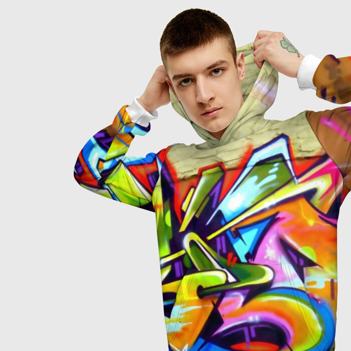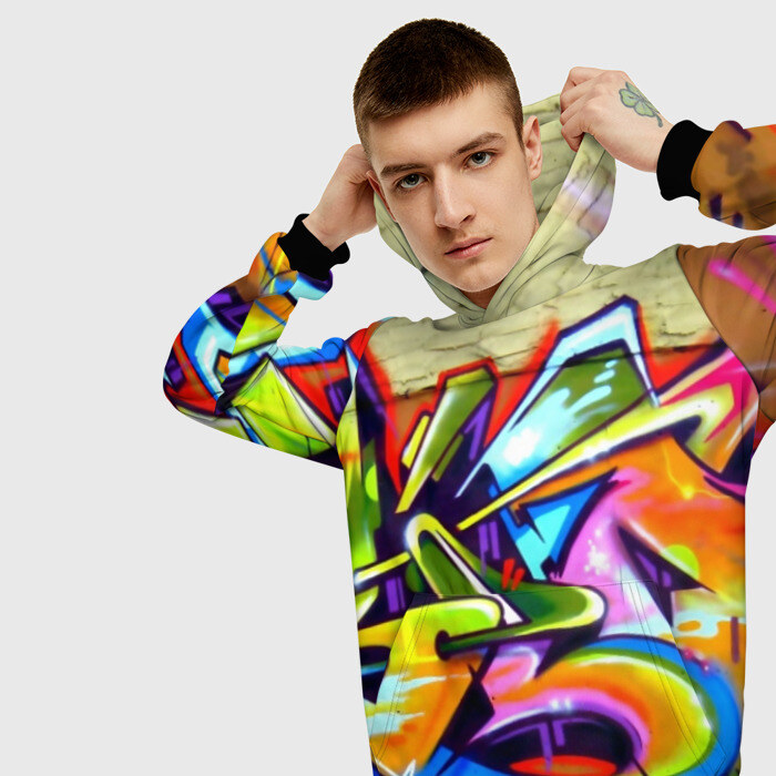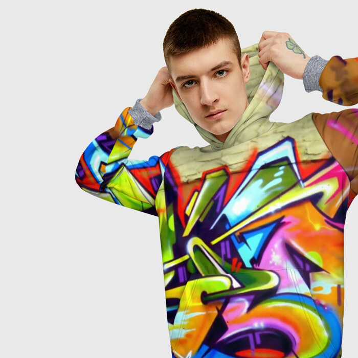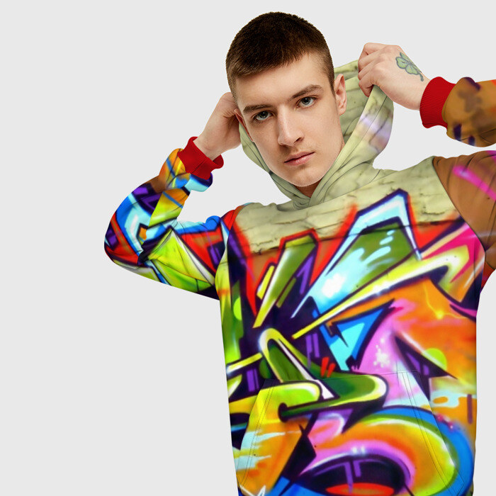 Толстовка 3D сшита из ткани с тонким мягким внутренним слоем. Свободная посадка по фигуре, капюшон с завязками и большой карман спереди, в котором удобно прятать или греть руки. Сшита из гладкого синтетической ткани, с полным покрытием принтом.