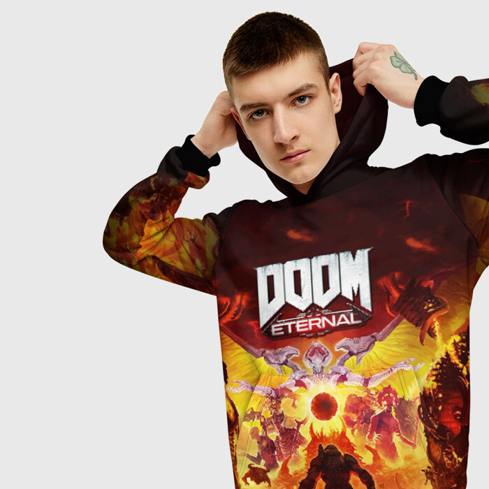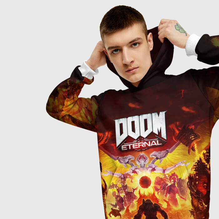 Толстовка 3D сшита из ткани с тонким мягким внутренним слоем. Свободная посадка по фигуре, капюшон с завязками и большой карман спереди, в котором удобно прятать или греть руки. Сшита из гладкого синтетической ткани, с полным покрытием принтом.