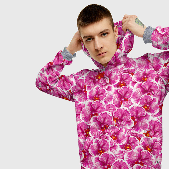 Мужская толстовка 3D с принтом Розовые орхидеи