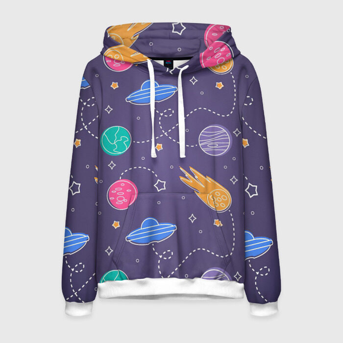 Толстовка 3D сшита из ткани с тонким мягким внутренним слоем. Свободная посадка по фигуре, капюшон с завязками и большой карман спереди, в котором удобно прятать или греть руки. Сшита из гладкого синтетической ткани, с полным покрытием принтом.