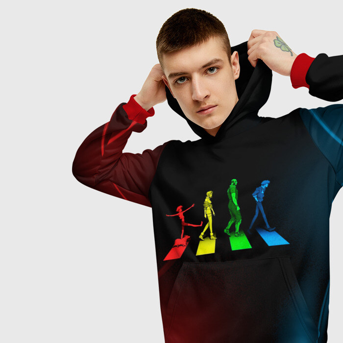 Толстовка 3D сшита из ткани с тонким мягким внутренним слоем. Свободная посадка по фигуре, капюшон с завязками и большой карман спереди, в котором удобно прятать или греть руки. Сшита из гладкого синтетической ткани, с полным покрытием принтом.