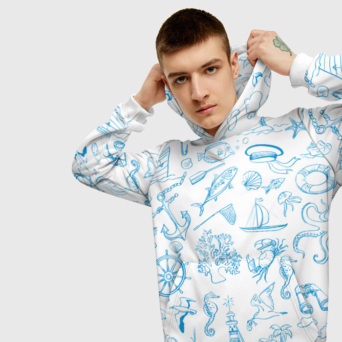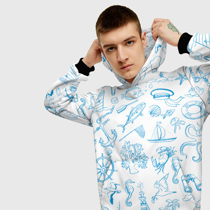 Мужская толстовка 3D Морская тема
