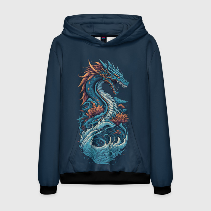 Мужская толстовка 3D Синий дракон от нейросети