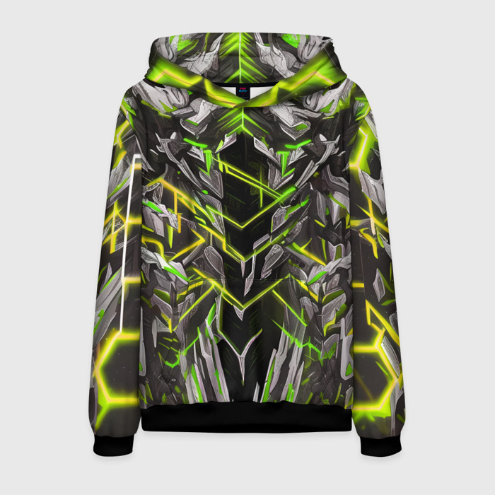 Мужская толстовка 3D с принтом Киберпанк линии зелёные