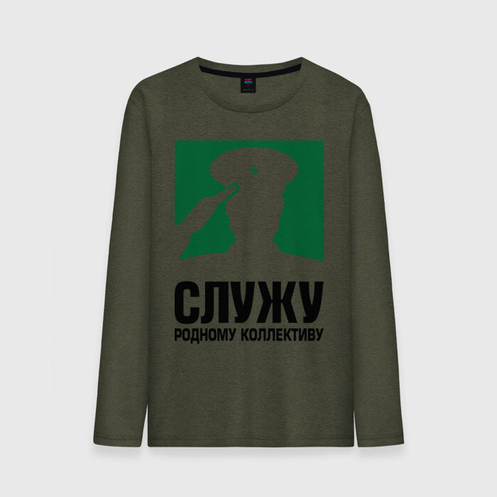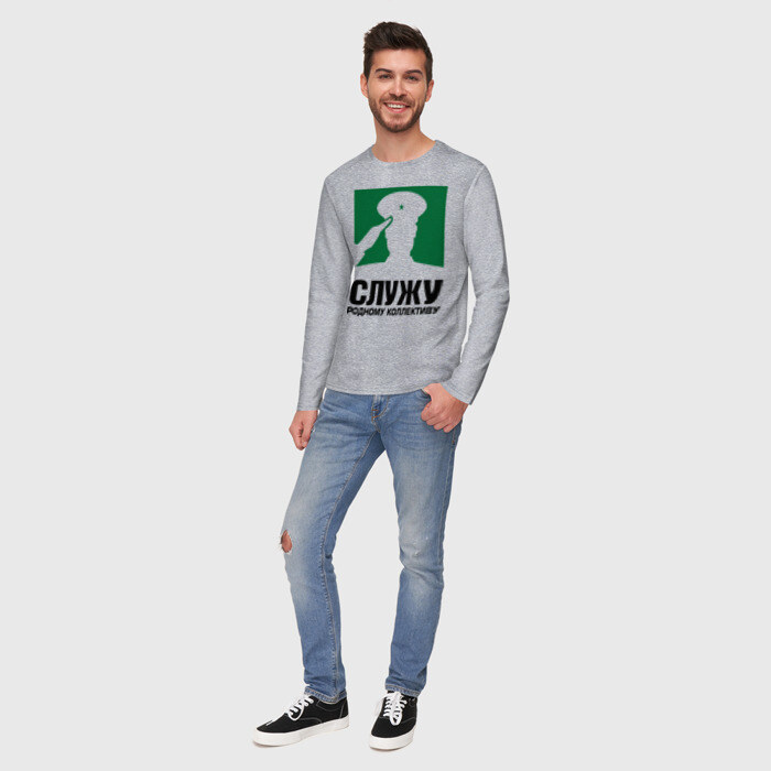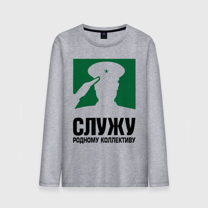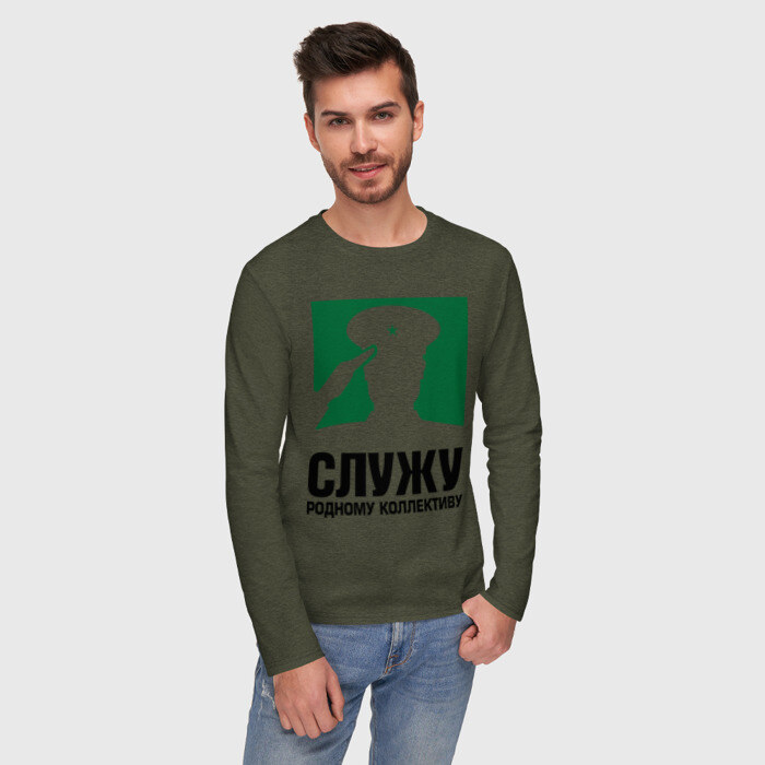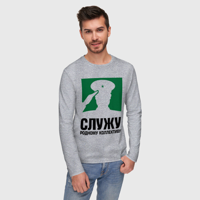 Мужской лонгслив хлопок с принтом Служу родному коллективу