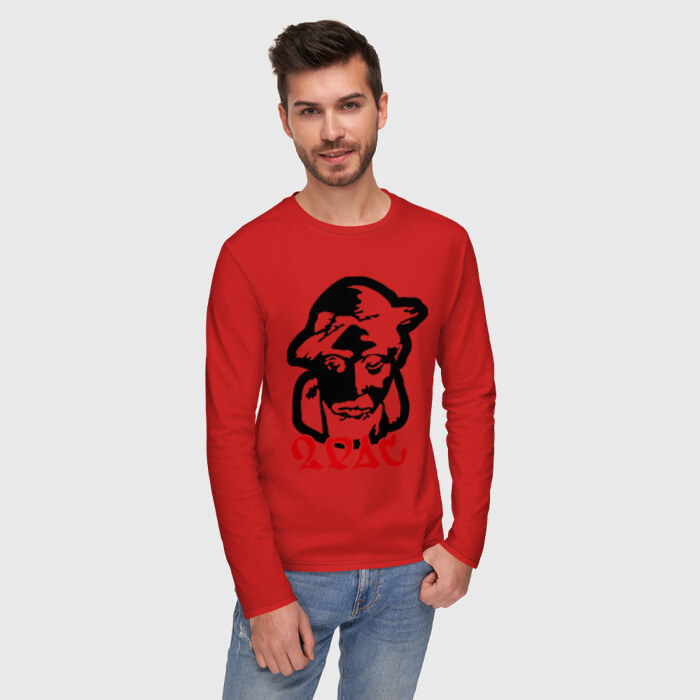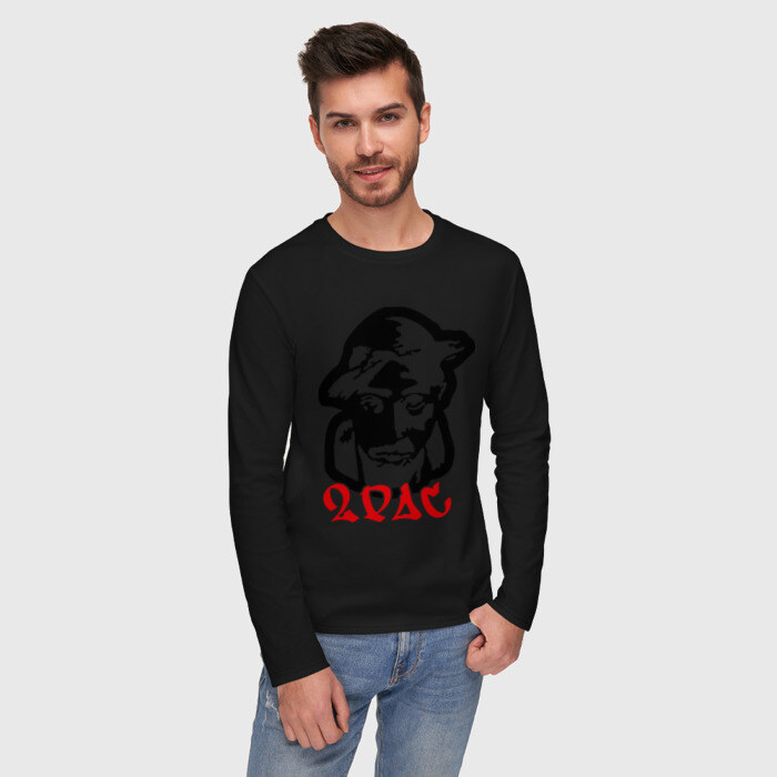 Мужской лонгслив хлопок с принтом 2pac (black)