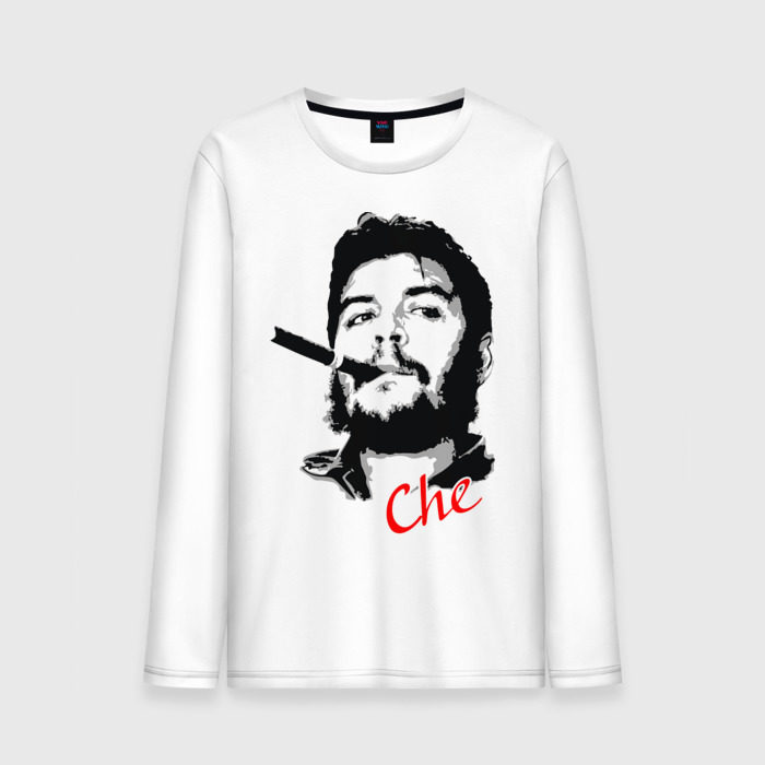 Мужской лонгслив хлопок с принтом Че Гевара с сигарой