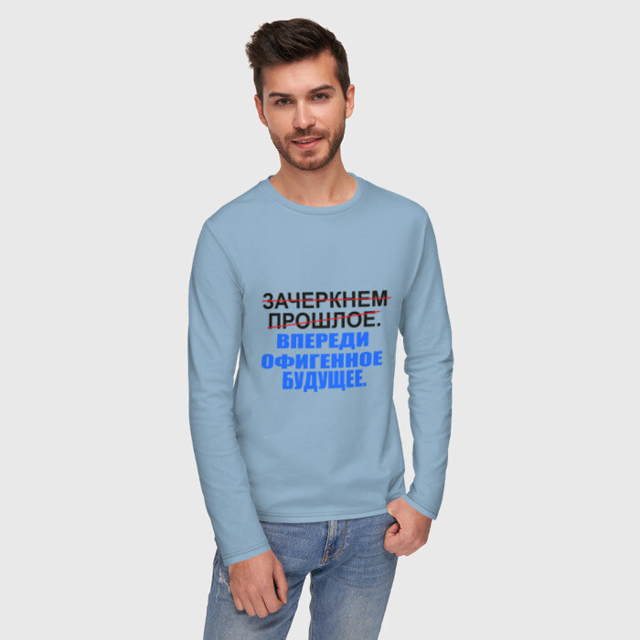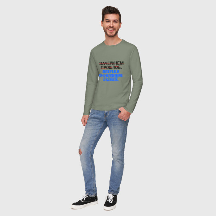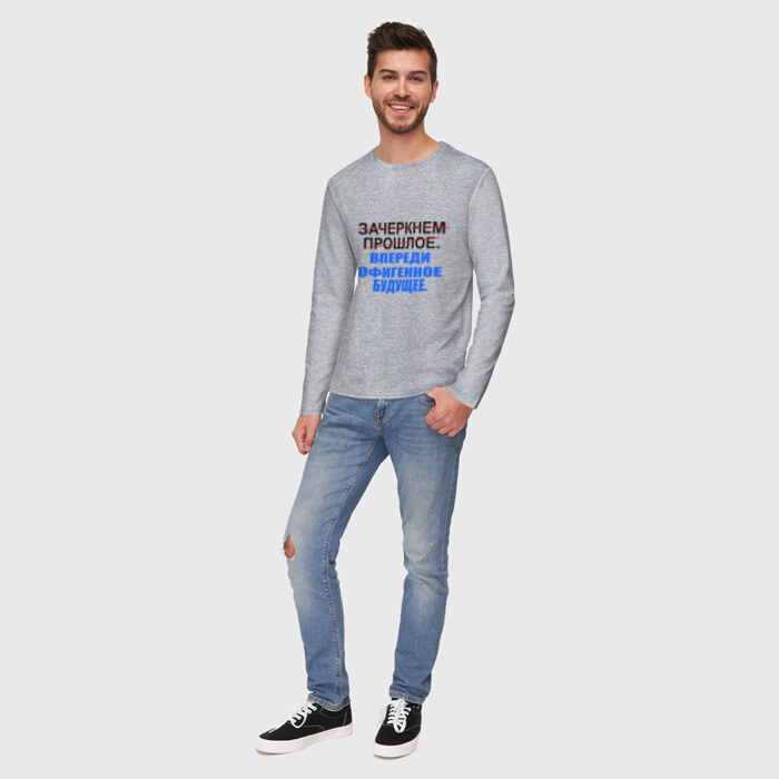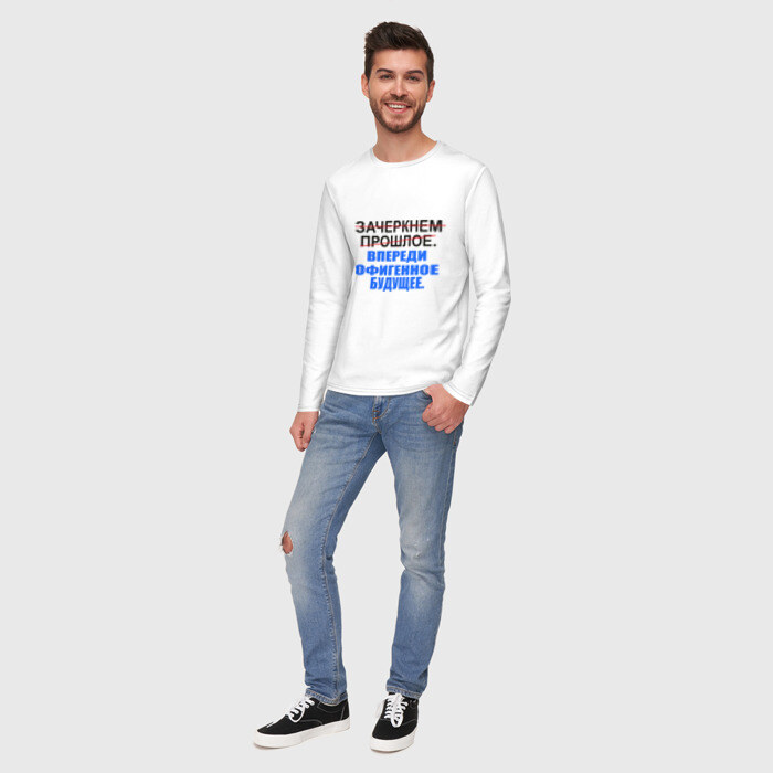 Мужской лонгслив хлопок с принтом Зачеркнуть прошлое