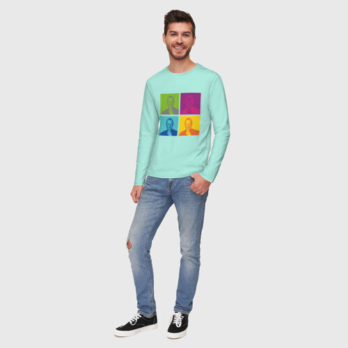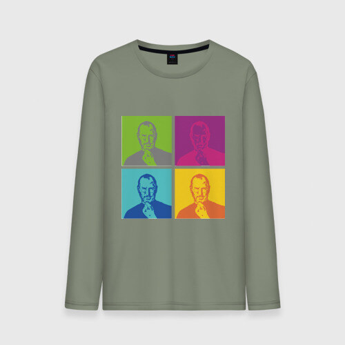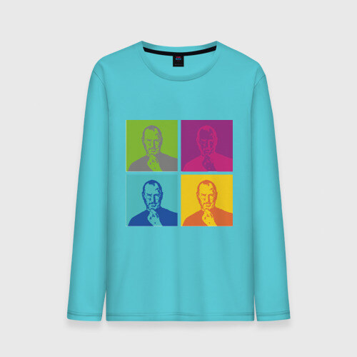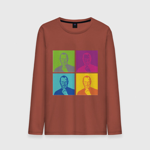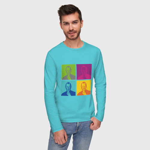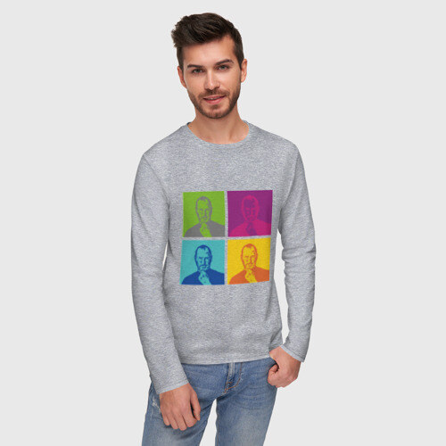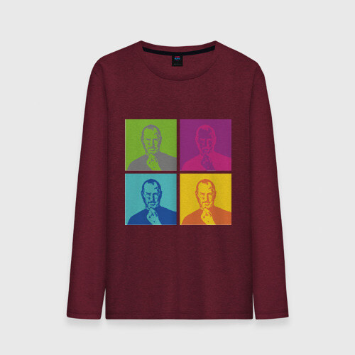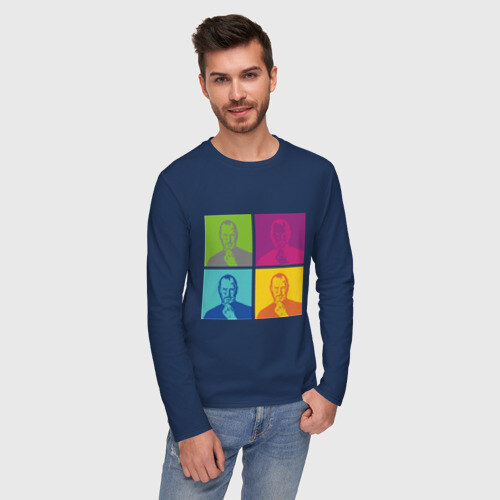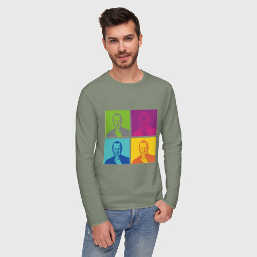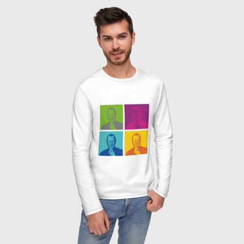 Мужской лонгслив хлопок с принтом Стив Джобс цветной