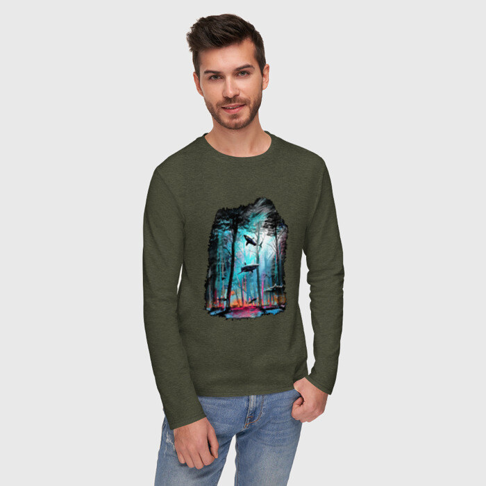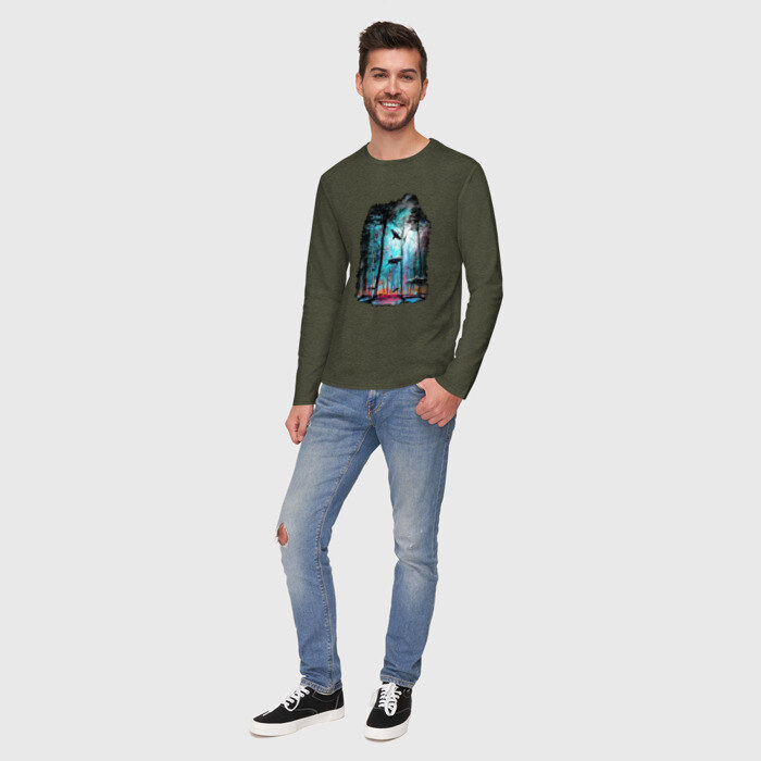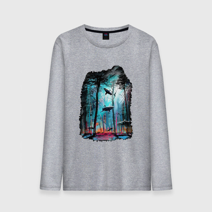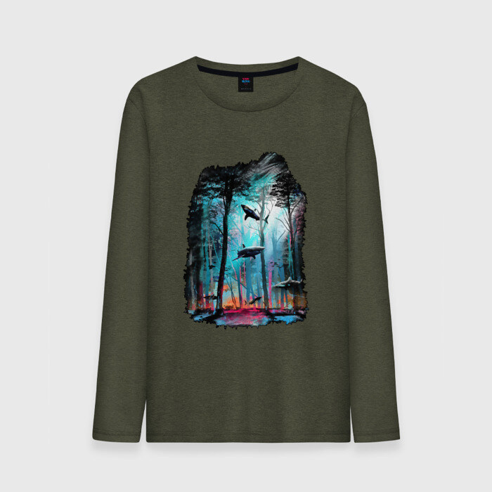 Мужской лонгслив хлопок Подводный мир (лес с акулами)