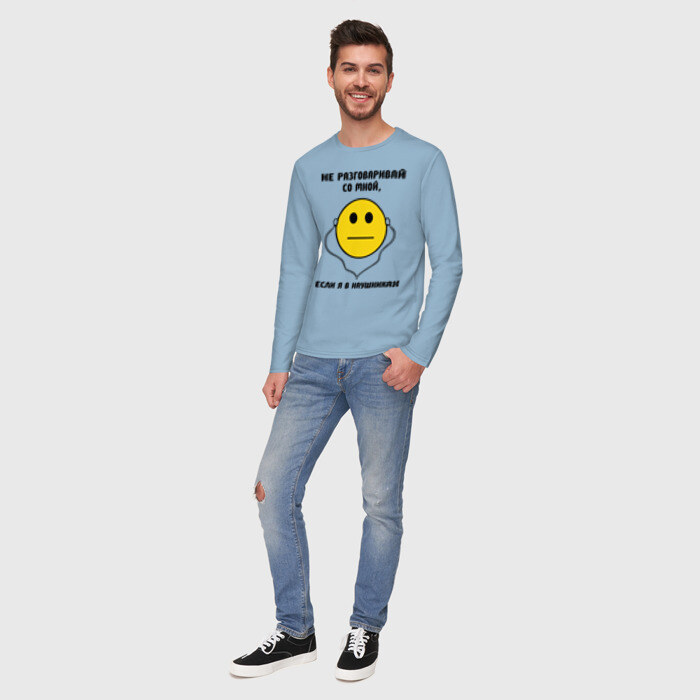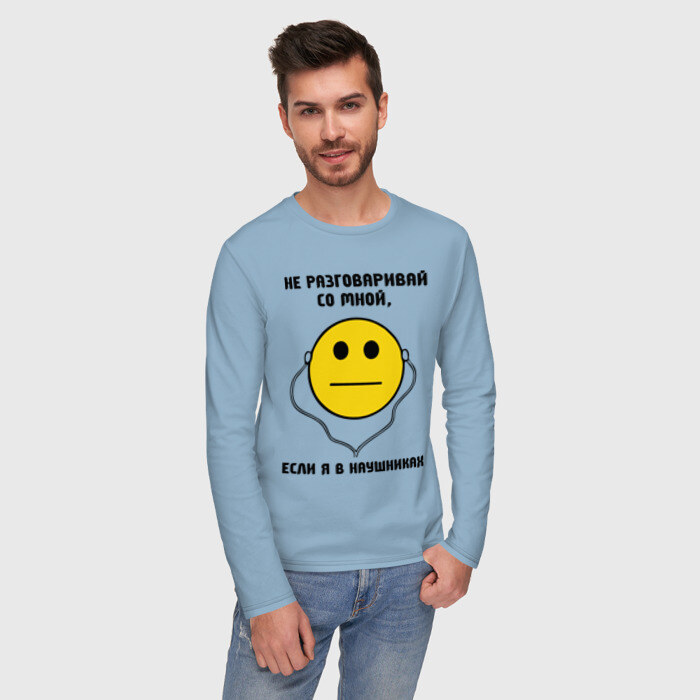 Мужской лонгслив хлопок с принтом Не разговаривай со мной, если я в наушниках