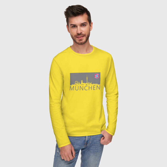 Мужской лонгслив хлопок с принтом Bayern Munchen - Munchen City grey (2018)