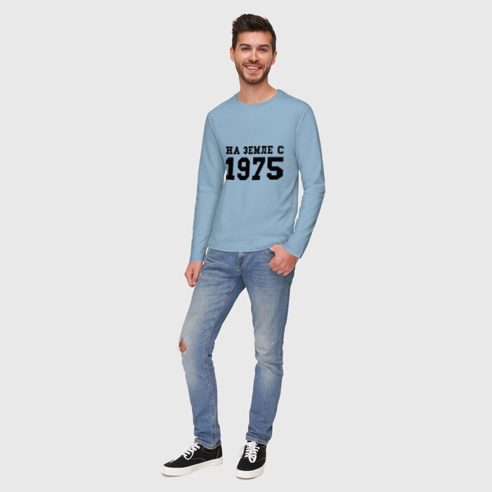 Мужской лонгслив хлопок с принтом На Земле с 1975