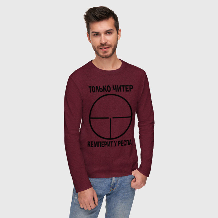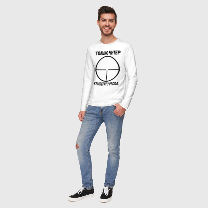 Мужской лонгслив хлопок с принтом Только читер кемперит у респа