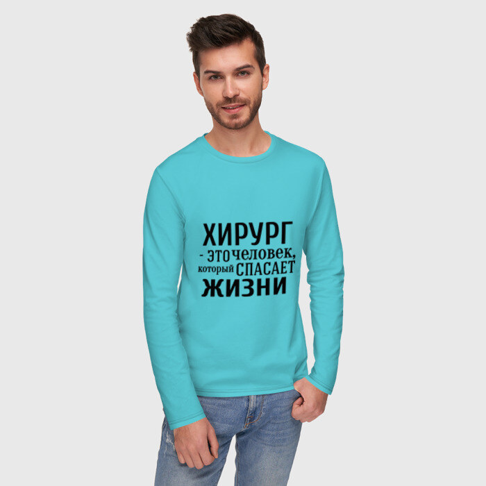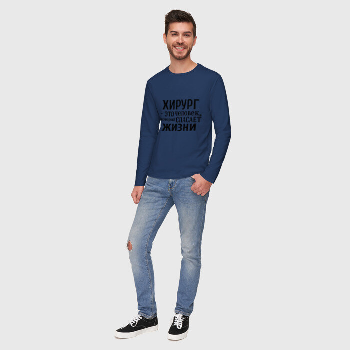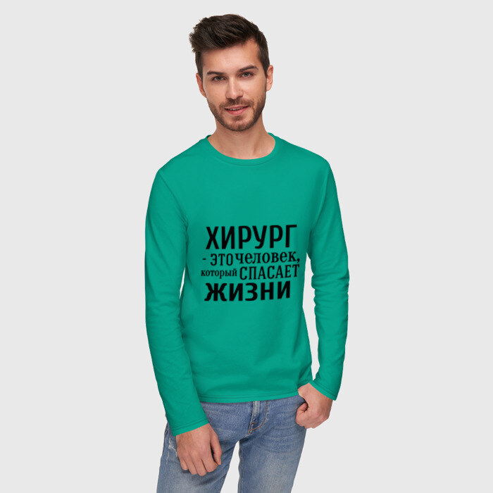 Мужской лонгслив хлопок с принтом Хирург спасает жизни