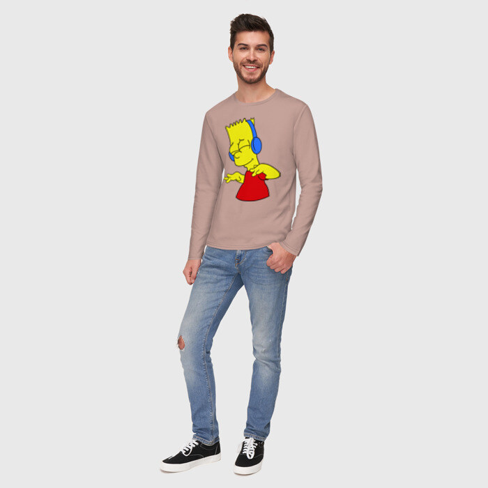 Мужской лонгслив хлопок с принтом Барт в наушниках
