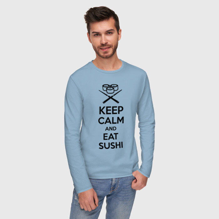 Мужской лонгслив хлопок с принтом Keep calm and eat sushi