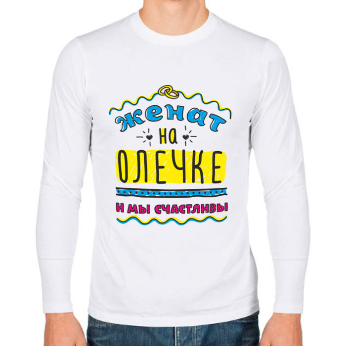 Мужской лонгслив хлопок с принтом Женат на Олечке