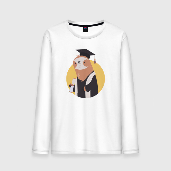 Мужской лонгслив хлопок с принтом Ленивец Выпускник