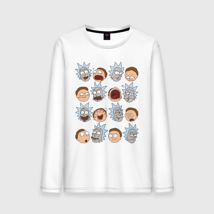 Мужской лонгслив хлопок с принтом Faces Rick and Morty