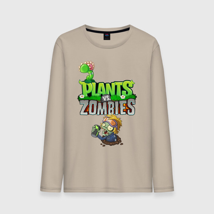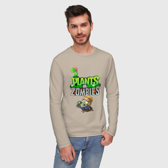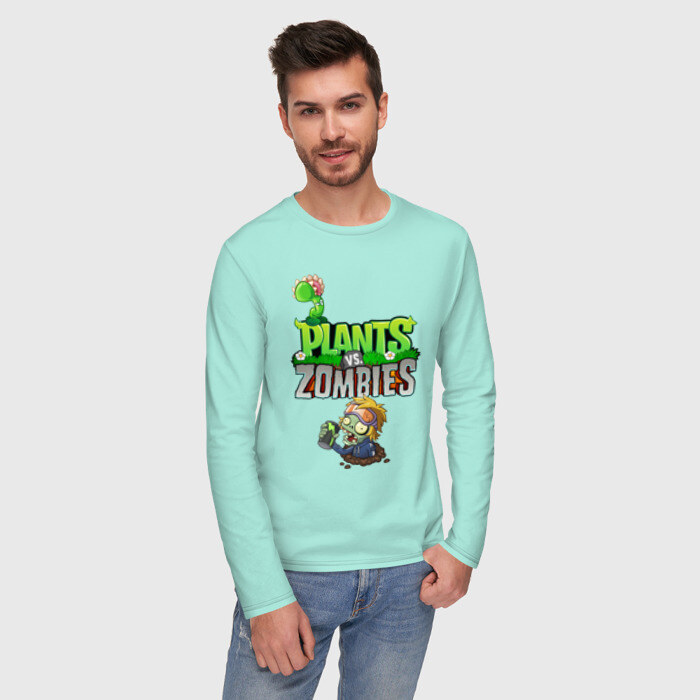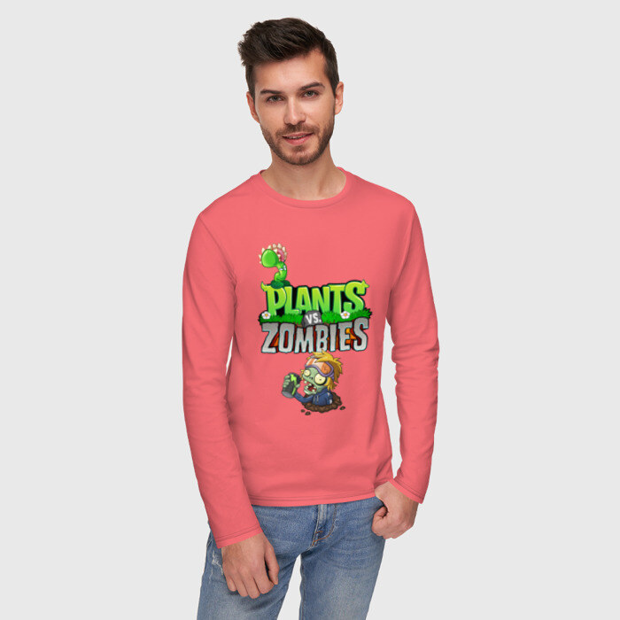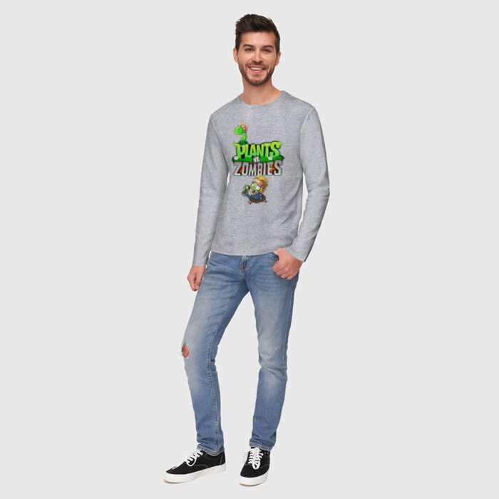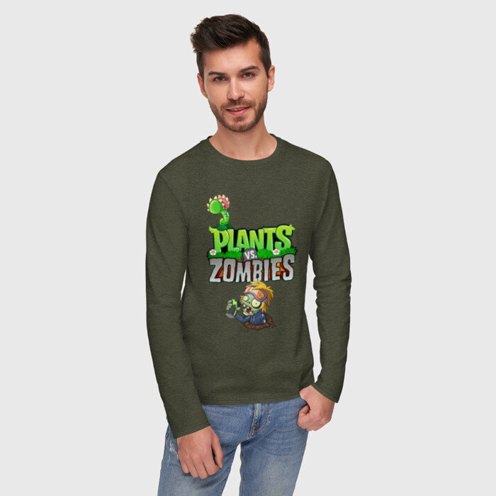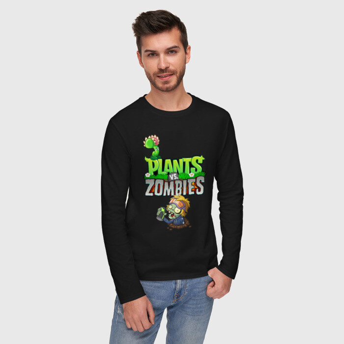 Мужской лонгслив хлопок с принтом Plants vs. Zombies