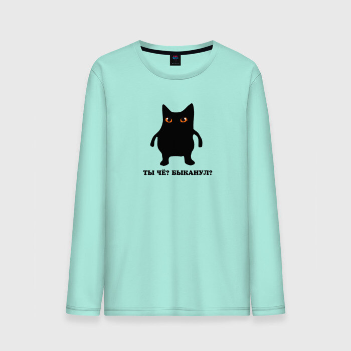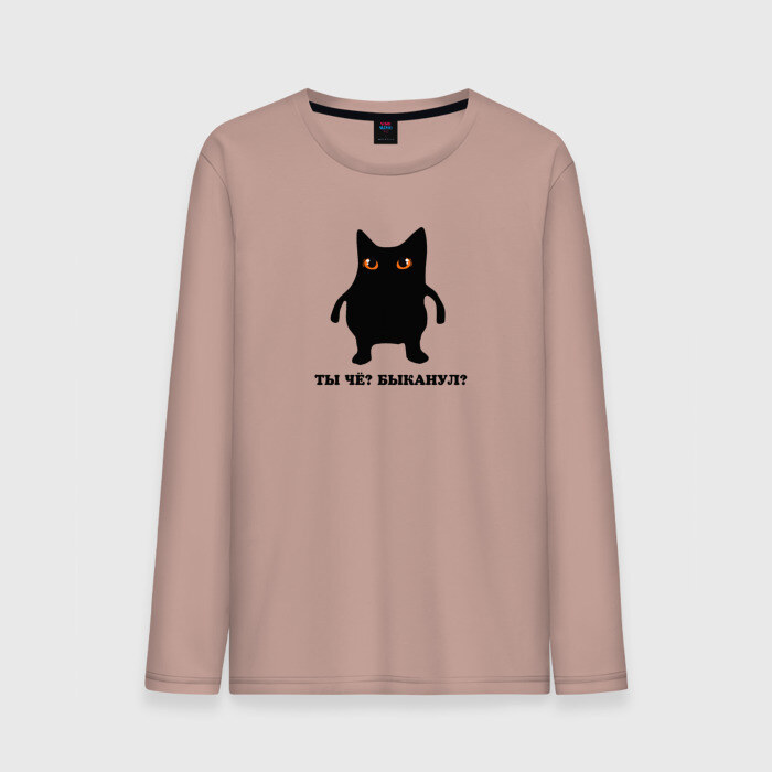Мужской лонгслив хлопок с принтом Кот быканул мем