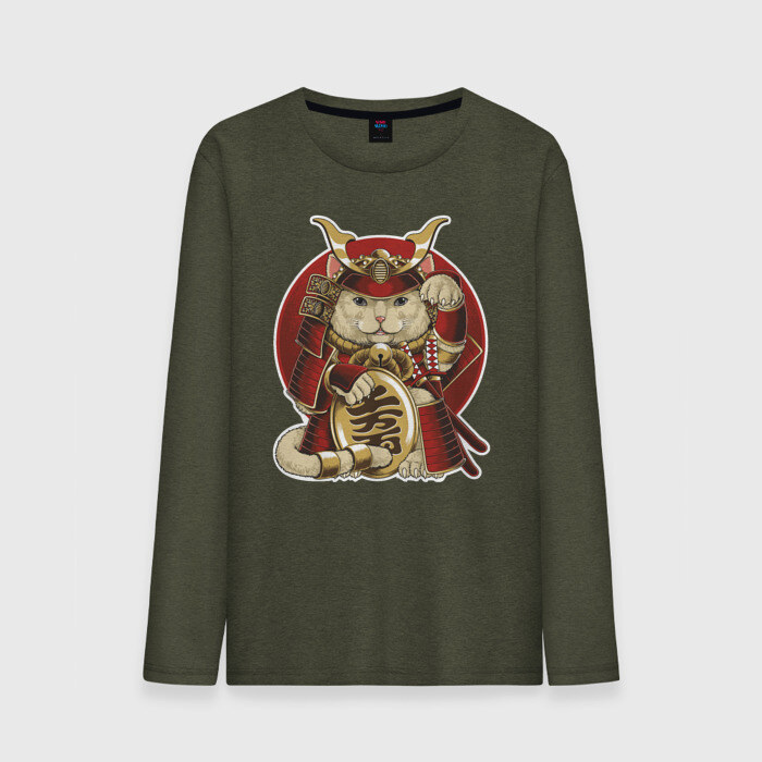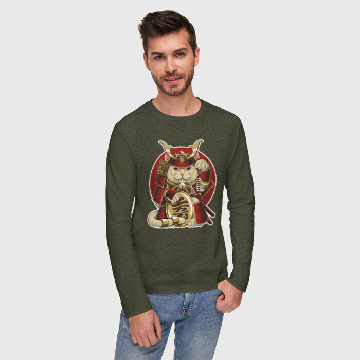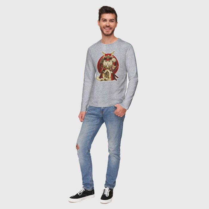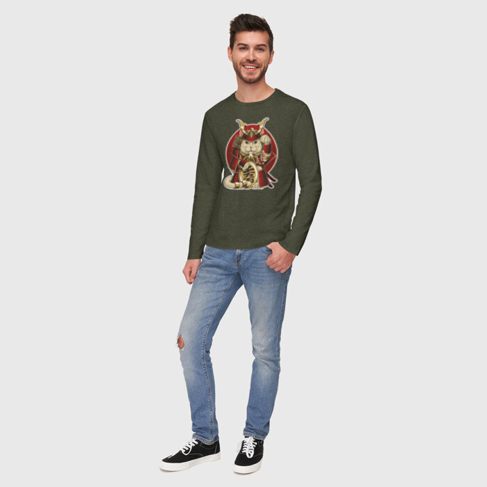 Мужской лонгслив хлопок с принтом Кот Самурай