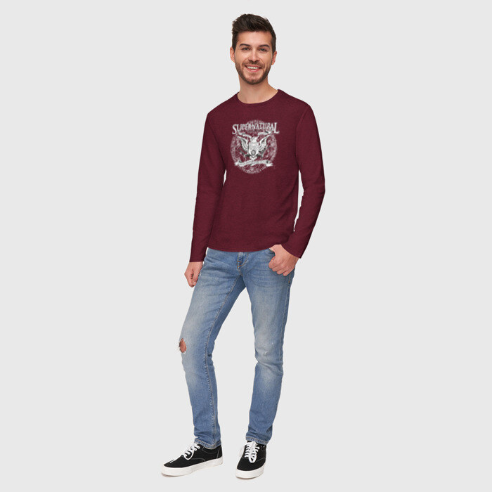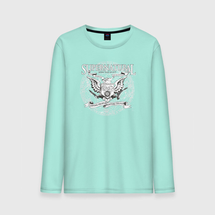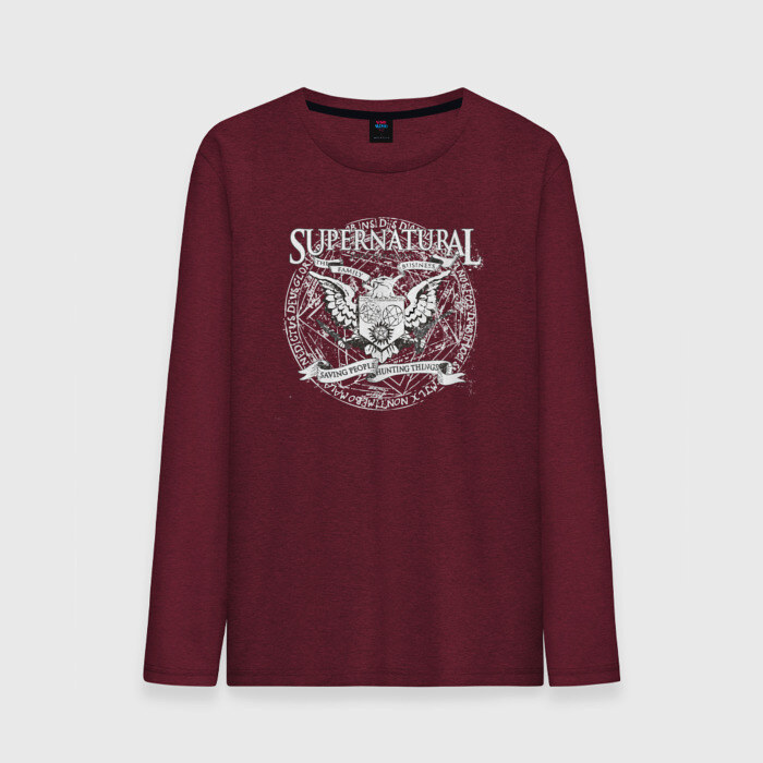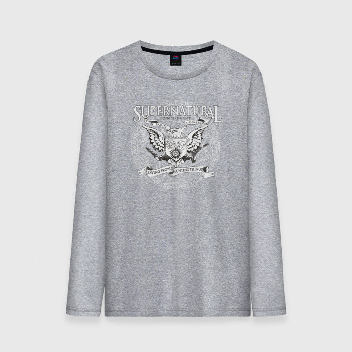 Мужской лонгслив хлопок с принтом Saving People Hunting Things