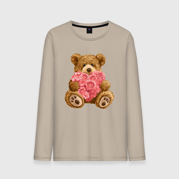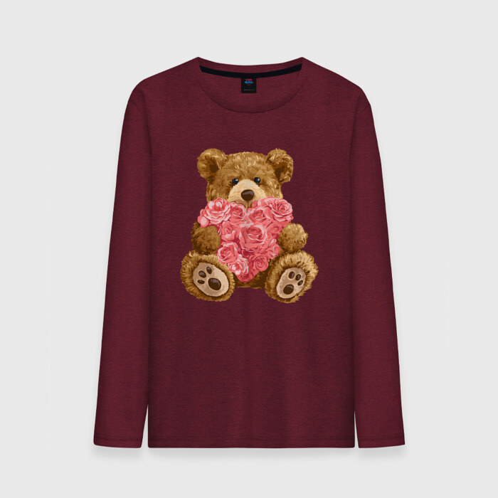 Мужской лонгслив хлопок Плюшевый медведь с сердечком
