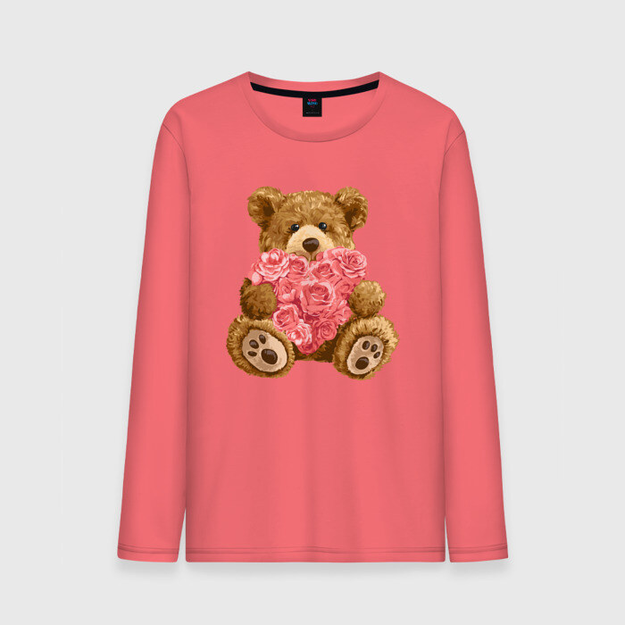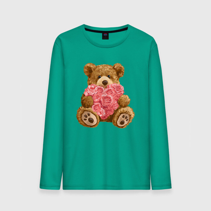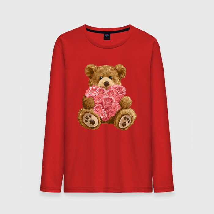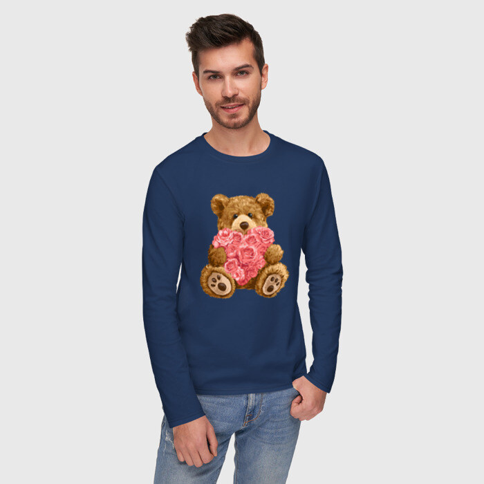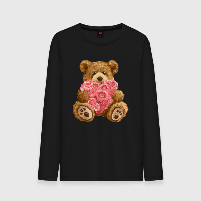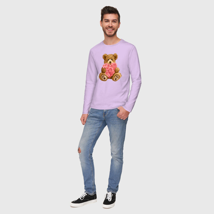 Мужской лонгслив хлопок с принтом Плюшевый медведь с сердечком