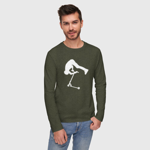 Мужской лонгслив хлопок с принтом Самокат фристайл Pro rider
