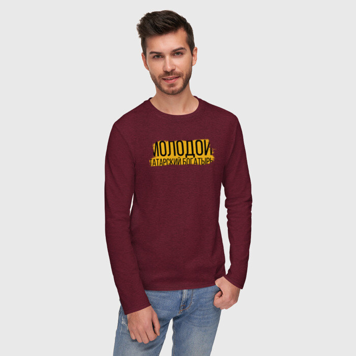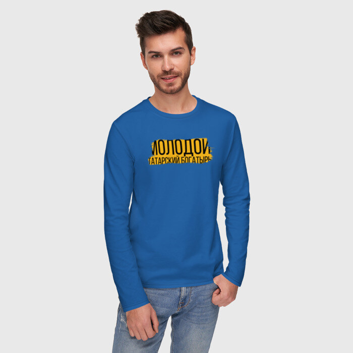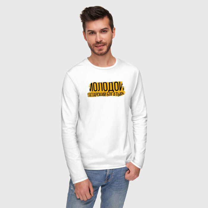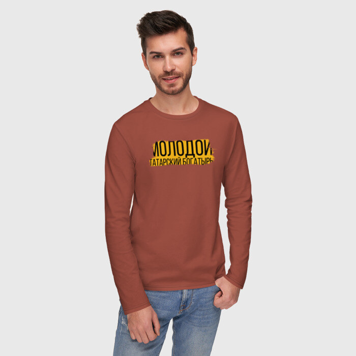 Мужской лонгслив хлопок с принтом Татарский богатырь