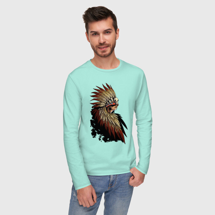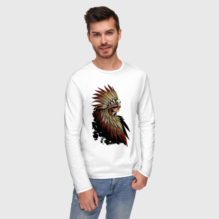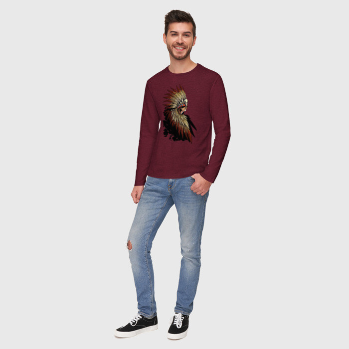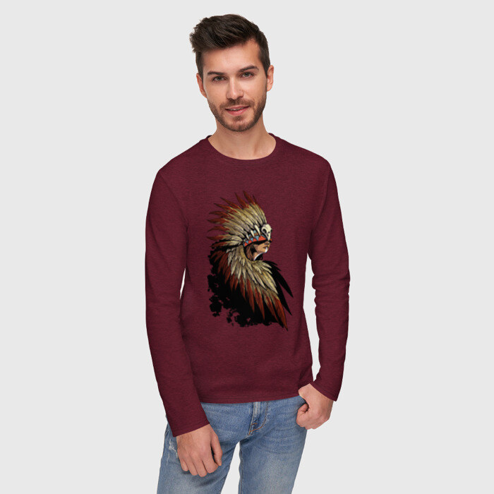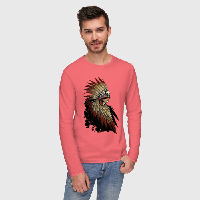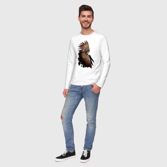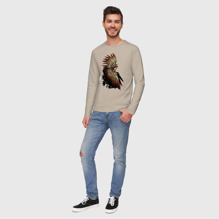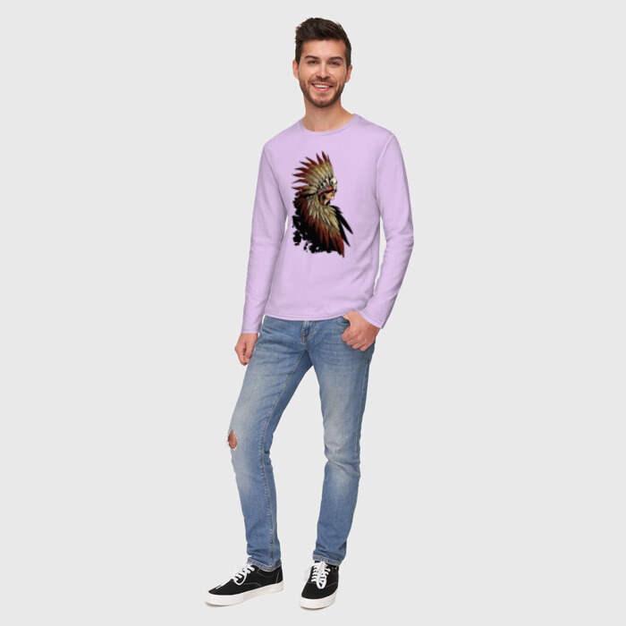 Мужской лонгслив хлопок с принтом Девушка в перьях