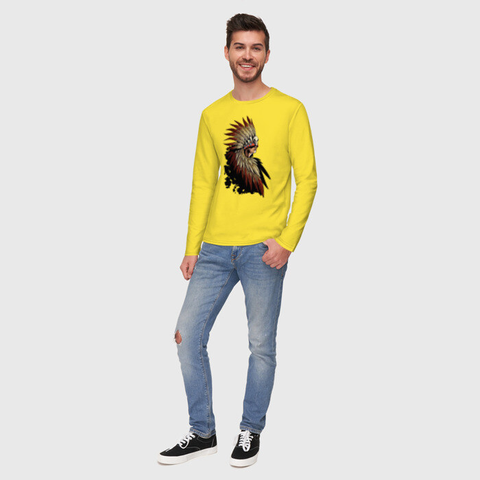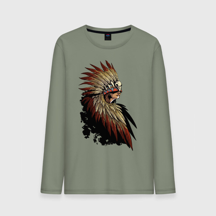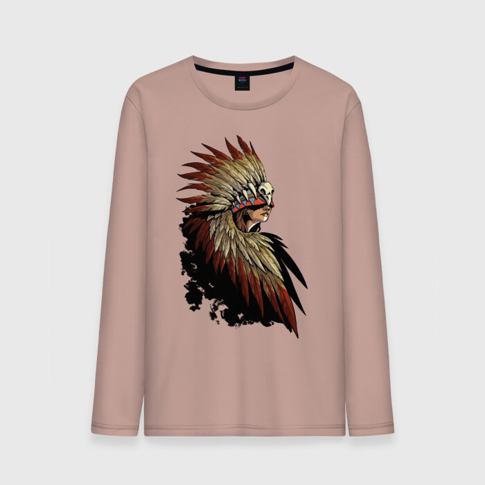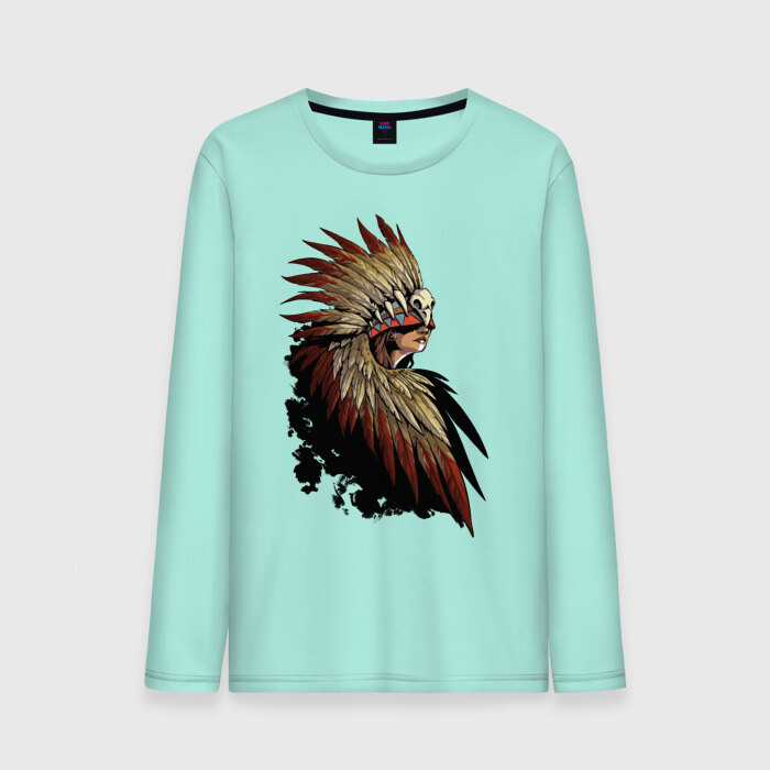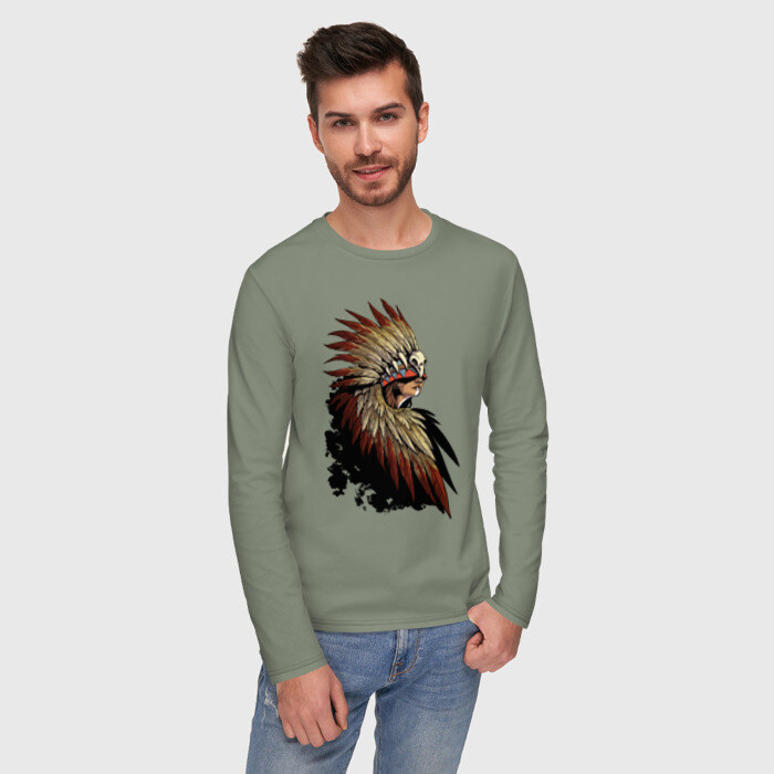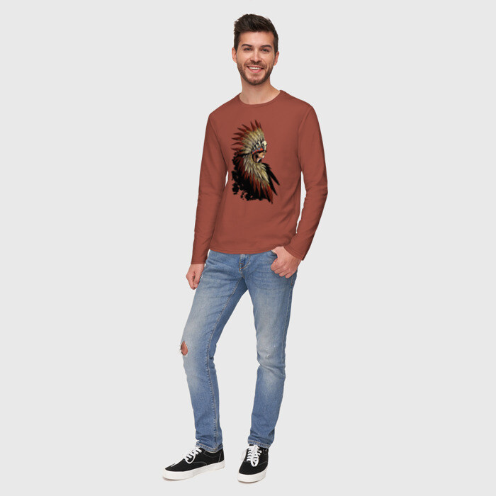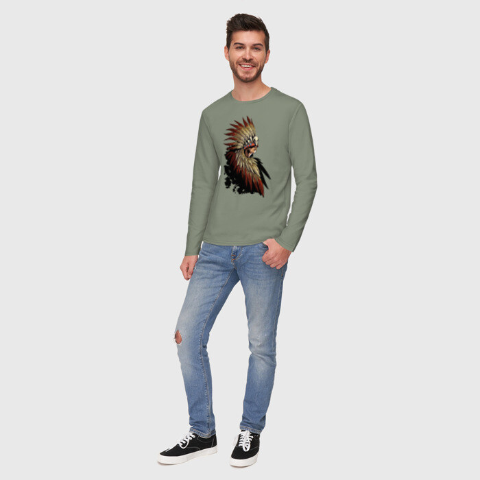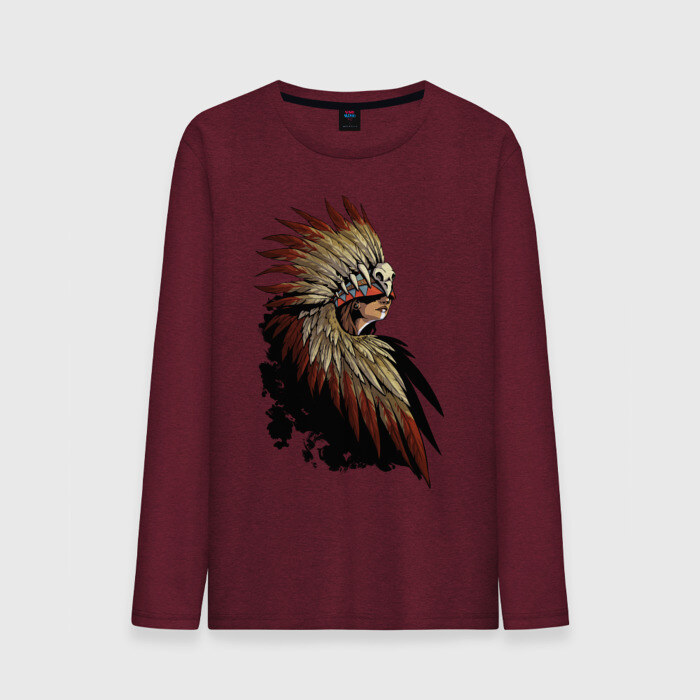 Мужской лонгслив хлопок с принтом Девушка в перьях