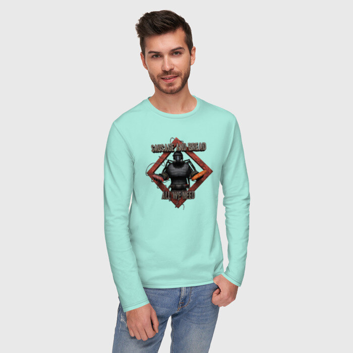 Мужской лонгслив хлопок с принтом Sausage and bread