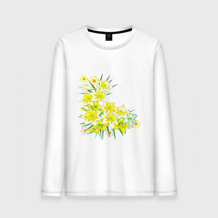 Мужской лонгслив хлопок с принтом Желтые нарциссы