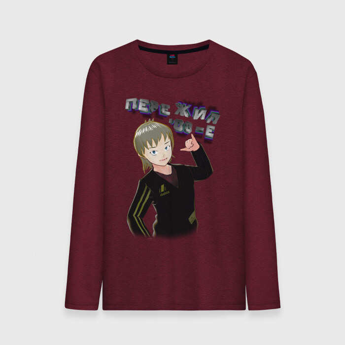 Мужской лонгслив хлопок с принтом Пережил Нулевые