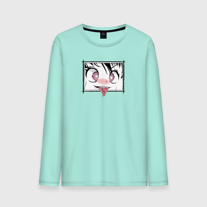 Мужской лонгслив хлопок с принтом Ахегао и милый язычёк