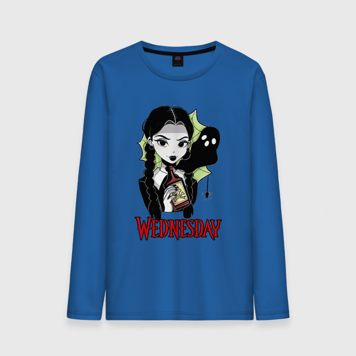 Мужской лонгслив хлопок с принтом Уэнсдэй с призраком