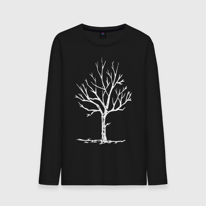 Мужской лонгслив хлопок с принтом Белое дерево
